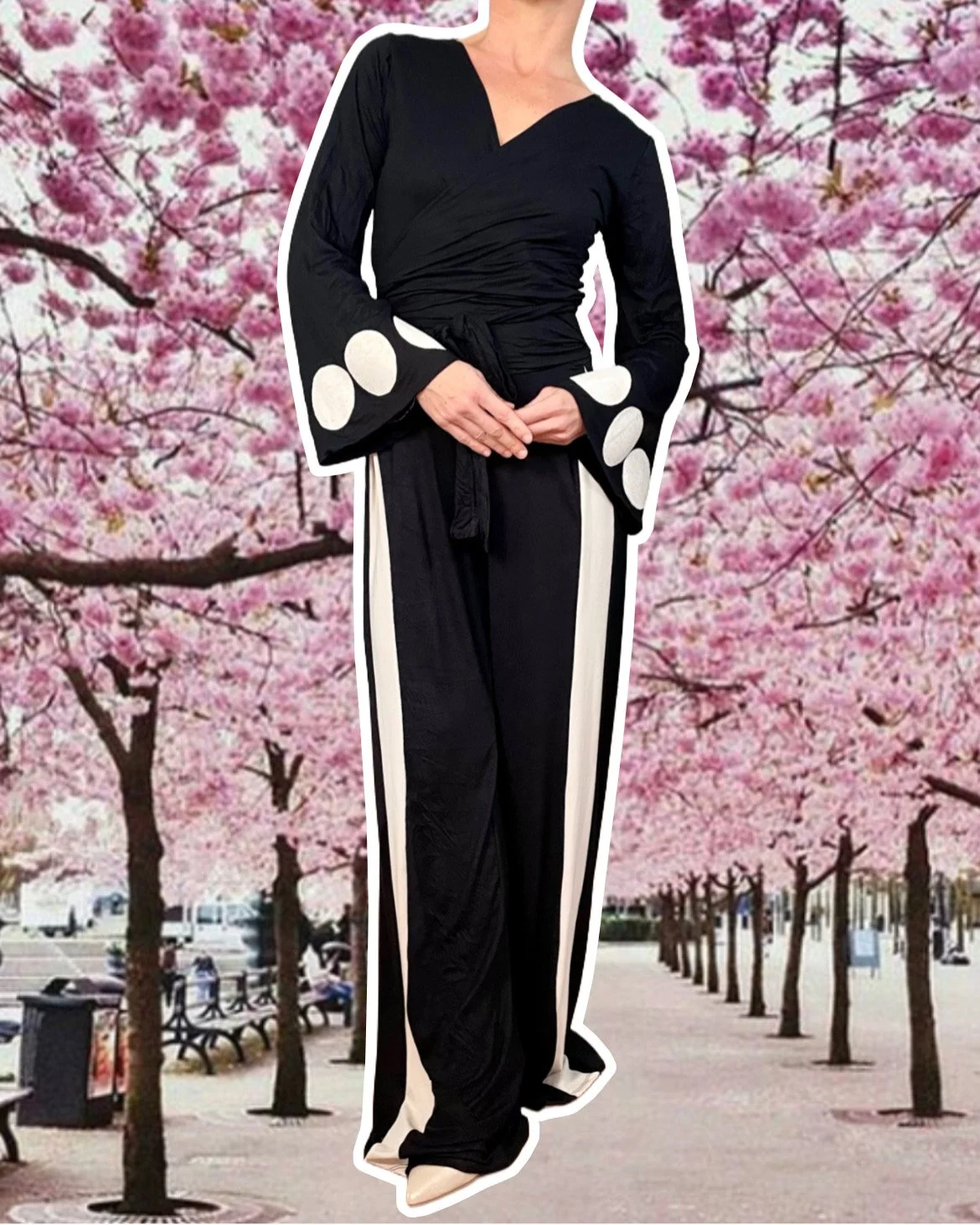 Stunning, eye catching and above all comfortable wrap top with show stopper sleeve design. Available in black only. See separate listing for pants.